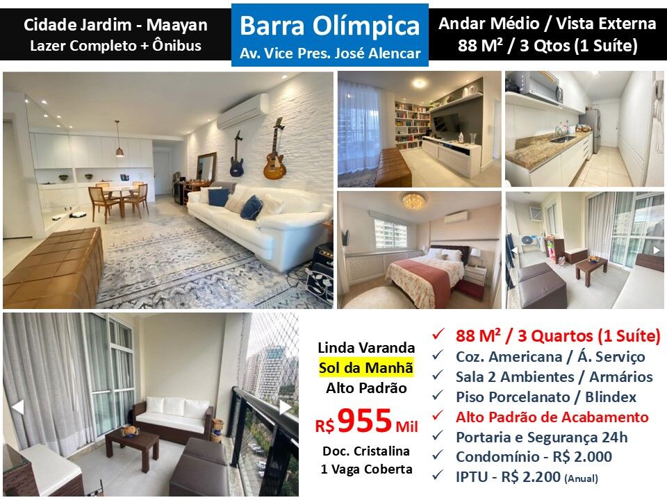 Cidade Jardim - Barra Olímpica - Rio de Janeiro/RJApto Barra da Tijuca Cidade Jardim Maayan 88M²