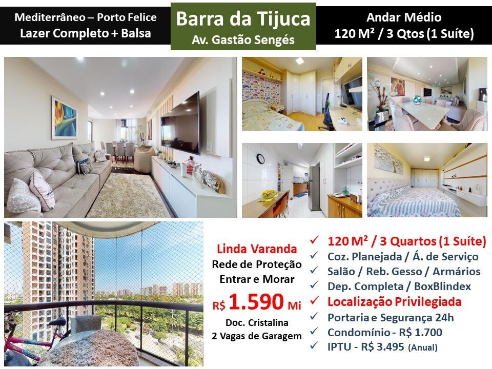 Apto Barra da Tijuca Mediterraneo Porto Felice 120M²