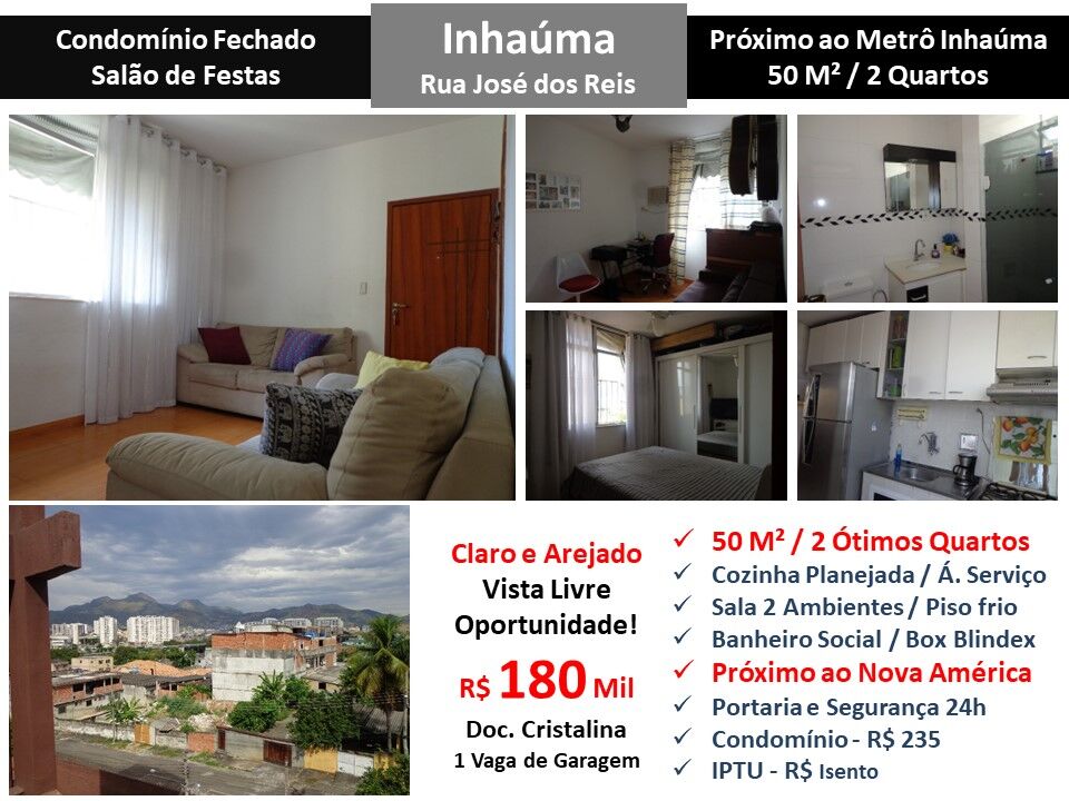 Maravilhoso apartamento claro e arejado com vista livre em condomínio em Inhauúa. São 50m² com sala em 2 ambientes, 2 ótimos quartos, banheiro e cozinha planejada com área de serviço. Piso frio. 1 vaga de garagem. Condomínio com salão de festa e portaria com segurança 24 horas localizado próximo ao metrô Inhaúma e ao Nova América. OPORTUNIDADE!