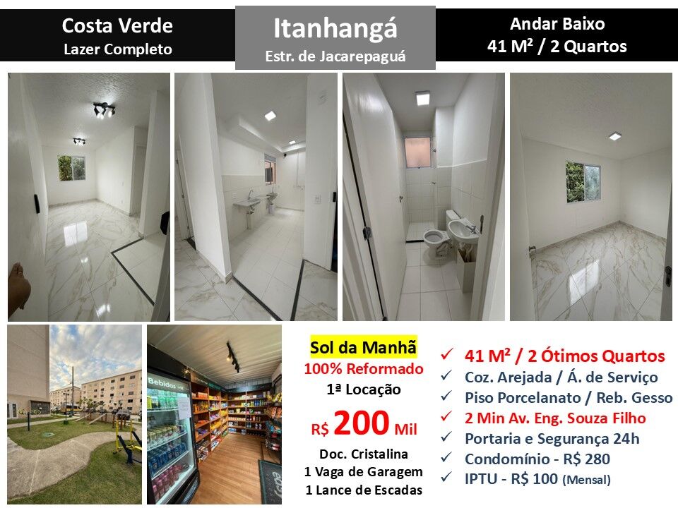 Maravilhoso apartamento em andar baixo 100% reformado em condomínio em localização privilegiada no Itanhangá na Barra da Tijuca. São 41m² com sala, 2 ótimos quartos, banheiro e cozinha arejada com área de serviço. Sol da manhã. Piso porcelanato. 1 vaga de garagem. Condomínio com lazer completo e portaria com segurança 24 horas localizado a 2 minutos da Av Engenheiro Souza Filho. 1 lance de escada. Primeira locação!