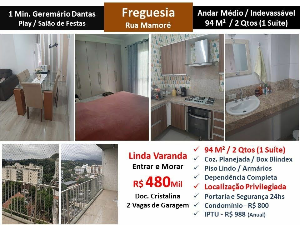 Maravilhoso apartamento indevassável em andar médio em localização privilegiada na Freguesia em Jacarepaguá. São 94 m² com sala, linda varanda, 2 quartos sendo 1 suíte, banheiro social, cozinha planejada e dependência completa. Armários. 2 vagas de garagem. Prédio com playground com salão de festas e portaria com segurança 24 horas localizado a 1 minuto da Av Geremário Dantas. Entrar e morar!