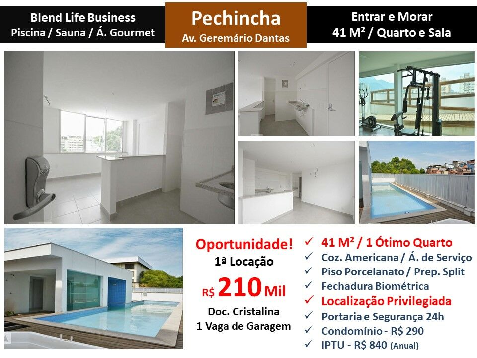 Apto JPA Pechincha Blend Life 41M² - Lindo apartamento de primeira locação no condomínio Blend Life no Pechincha em Jacarepaguá com lazer completo , piso frio , cozinha americana, preparação para ar split e fechadura biométrica. 1 vaga de garagem. Colada a Rua José Silva.