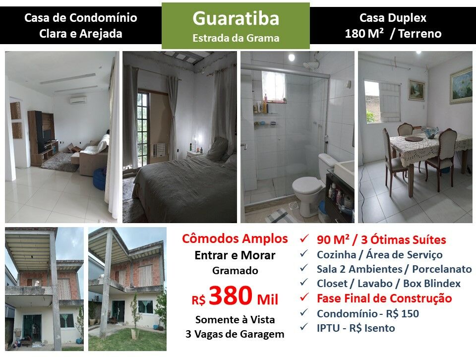 Maravilhosa casa duplex com cômodos amplos clara e arejada em fase final de construção em condomínio em localização privilegiada em Guaratiba. São 180m² de terreno com 80m² construídos divididos em sala em 2 ambientes, 3 ótimas suítes, closet, lavabo e cozinha com área de serviço. Área externa com gramado. Piso porcelanato. 3 vagas de garagem. Entrar e morar!