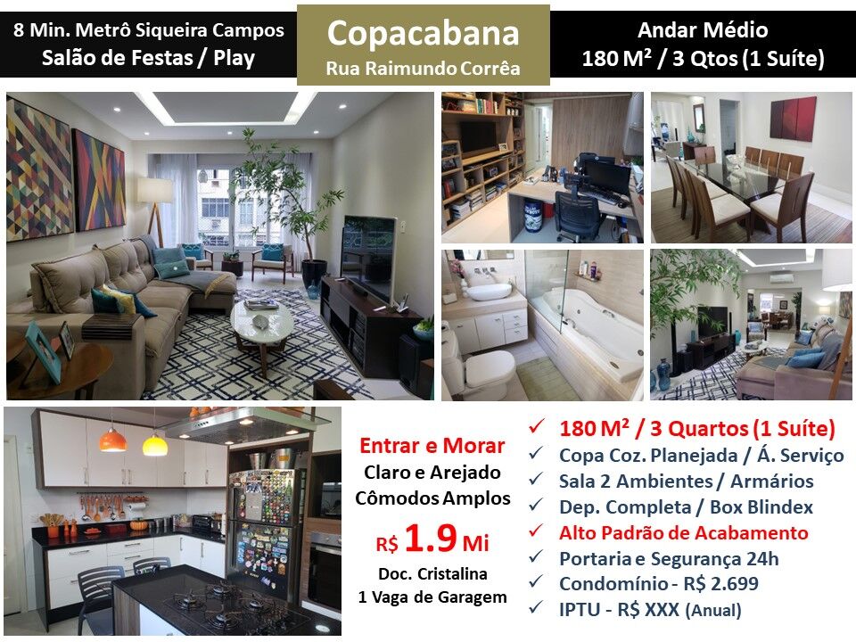 Copacabana - Rio de Janeiro/RJ, Zona SulApto Copacabana Raimundo Correa 180M²